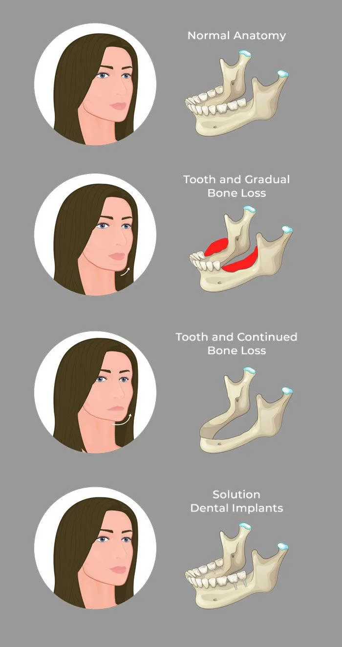If there isn't enough bone left, you will not be eligible for dental implants.